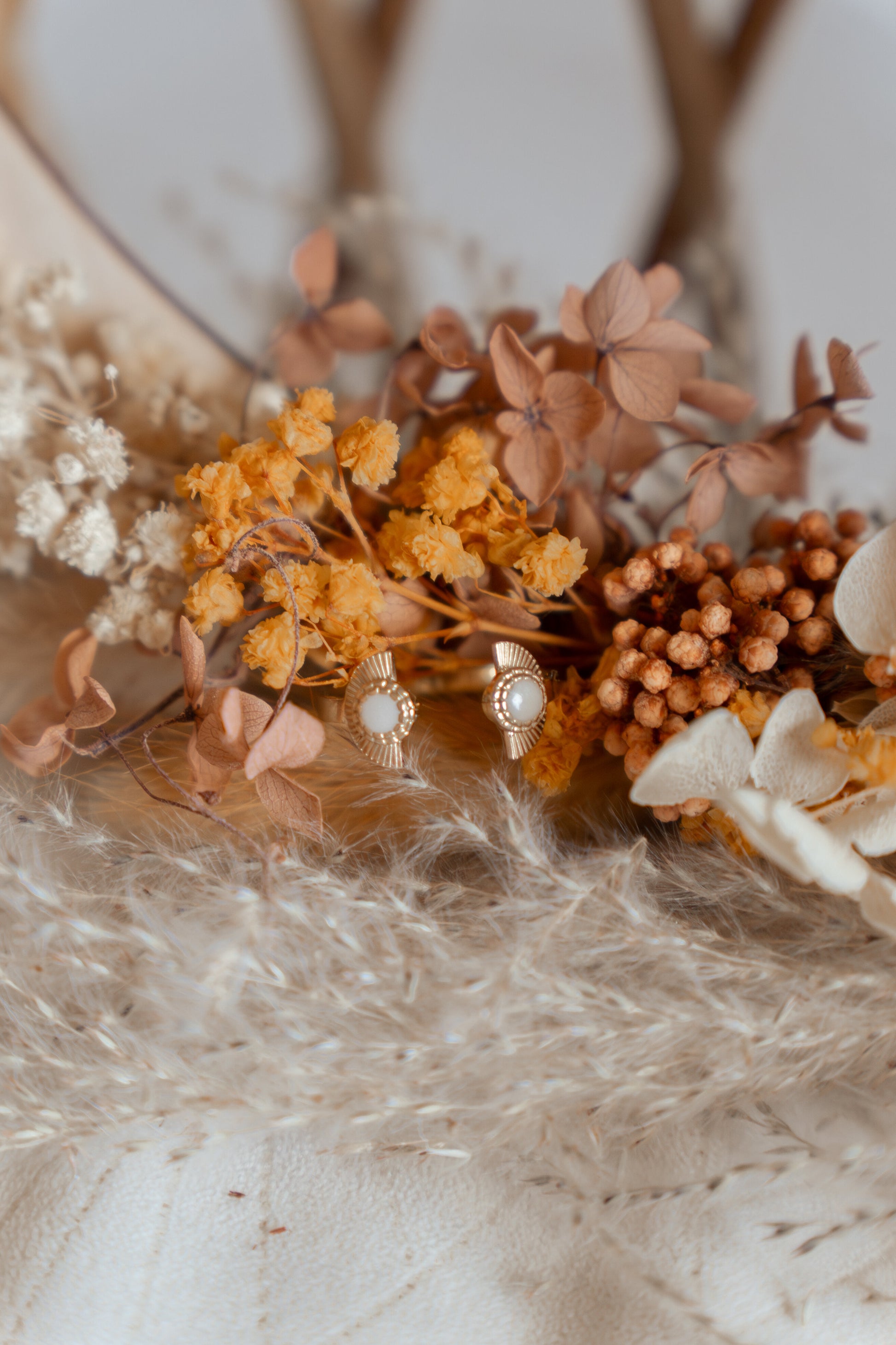 Son anneau doré ouvert se termine par deux cabochons en lait maternel, chacun délicatement entouré d’une aile d’or : un geste miniature qui évoque l’étreinte, le soin et la protection qu’une mère offre à son enfant.